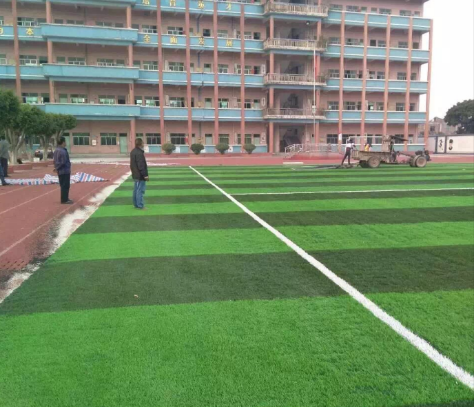 廣東省東莞市企石鎮(zhèn)新域?qū)W校選用的綠達(dá)產(chǎn)品,而綠達(dá)人造草所具備的優(yōu)點(diǎn)就是其仿真度高,看上去比較飽滿,直立性較好,場地鋪裝完成后與天然草坪相差不大,基本可以和天然草相媲美。