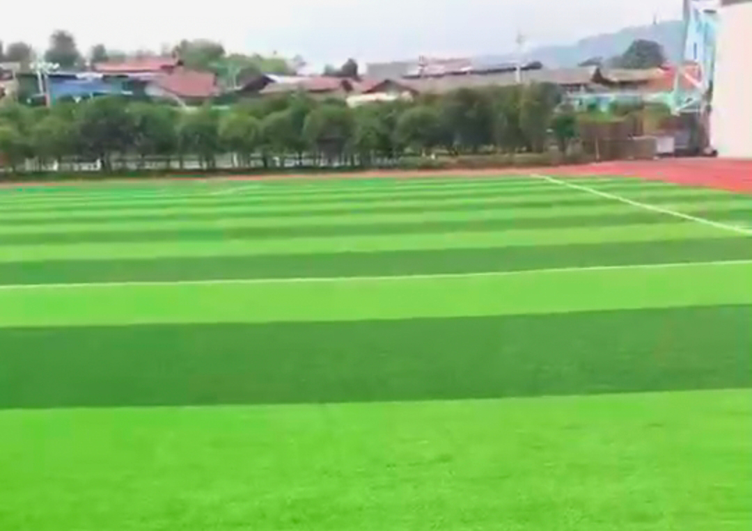 河南省新鄉(xiāng)市延津縣某小學(xué)足球場選用的是綠達LDMZ140(免充砂足球草),這款草的分特數(shù)14000,草高30mm,密度21000,顏色深綠+果綠,底布PP+網(wǎng)格。